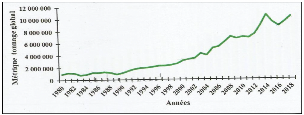 Figure 4 : Évolution du trafic global des marchandises au port de Cotonou (1980-2018).