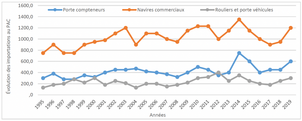 Figure 3 : Evolution du trafic des différents types de navires au port de Cotonou Source : DCM/PAC, 2019