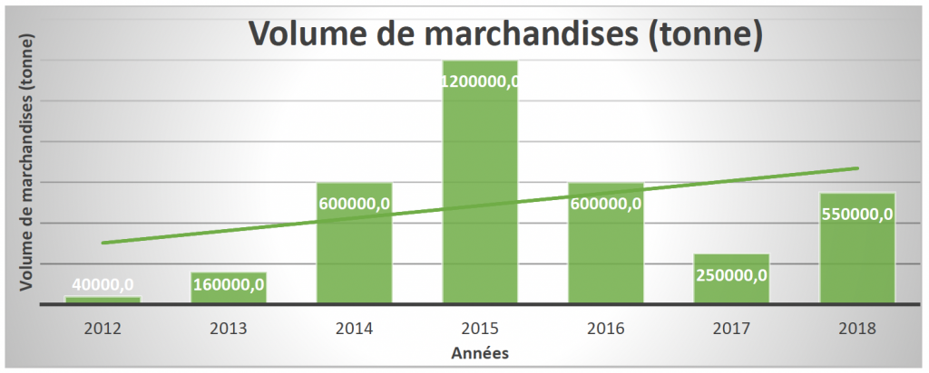 Figure 8 : Évolution des Volumes de marchandises en transbordement du port de Cotonou de 2012 à 2018 (en tonne).
