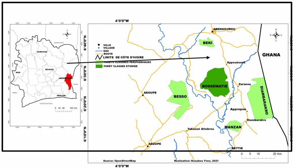 Figure 1:Situation géographique de la Forêt classée de Bossematié.