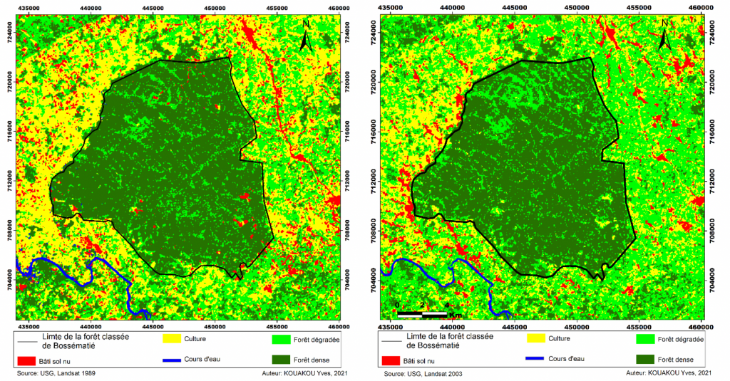 Spatial dynamics of the Bossematie classified forest in south-eastern Côte d’Ivoire