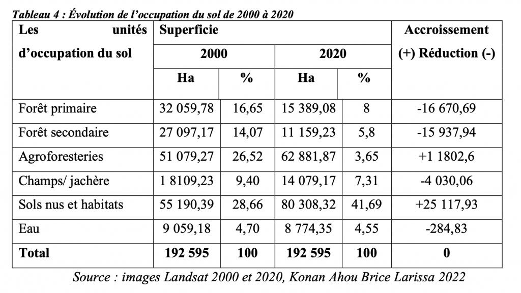 Tableau 4 : Évolution de l’occupation du sol de 2000 à 2020