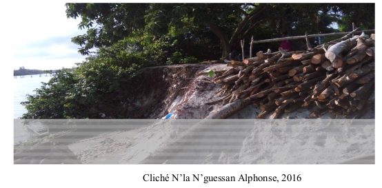 Les mutations naturelles et fréquentes du trait de côte sont perceptibles sur le littoral d’Assinie. Elles sont causées par des changements climatiques qui sont l’apanage des activités anthropiques sur le front marin et lagunaire. Ces actions se manifestent par la destruction des mangroves par la coupure des palétuviers pour l’usage des bois de chauffe, puis de construction d’abris (photo 2).