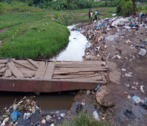 Photo 1 : La rivière Aboliba envahie par les ordures toxiques et ménagères à Koko-mamianou