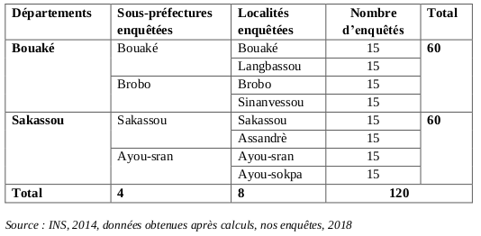 Tableau 1 : Répartition de la taille de l’échantillon suivant les localités choisies pour l’enquête