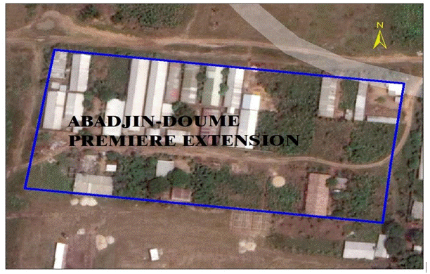 Le projet ABADJIN KOUTE EXTENSION est un morcellement de 25 ilots comprenant 2 espaces verts, un culte et une réserve administrative. Les 21 ilots restants sont destinés à l’habitation. La régularisation du lotissement consiste à tenir compte de l’existant tout en appliquant le projet de lotissement. C’est-à-dire à procéder à l’ouverture des voies et affecter les réserves à leur fin. Également, le second critère en plus d’être exempte de toutes servitudes d’urbanisme et ne faisant pas partie des sites retenus pour les projets d’Etat, la polygonale du site doit être bâtie à plus de 70%. A cet effet, un traitement cartographique est fait pour convertir le fichier dwg (autocad) en fichier kml (Figure 4).