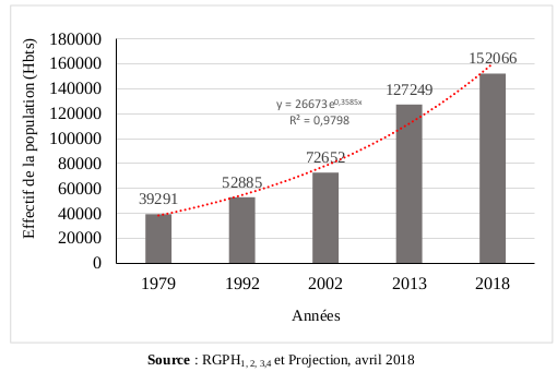 La figure 1 présente l’évolution de la population de la commune d’Akpro-Missérété entre 1979 et 2018.