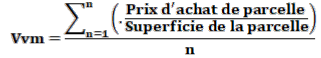 Avec n : nombre de parcelles dont les prix d’achat ont été utilisé pour le calcul.