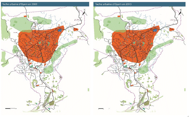Figure 3: Tâche urbaine d’Oyem en 2003 (684 ha) Figure 4: Tâche urbaine d’Oyem en 2013 (1364 ha)