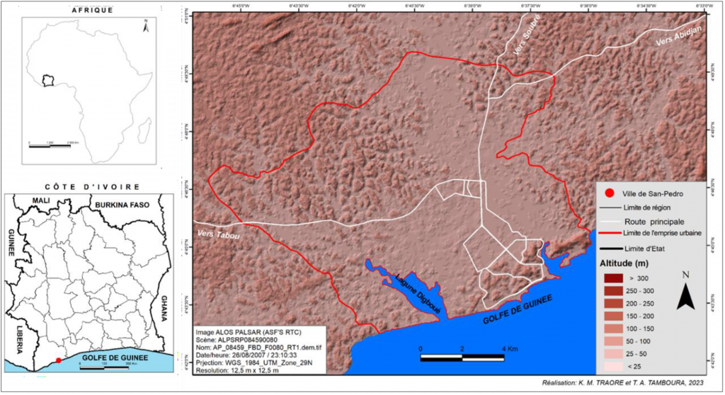Carte 1 : Situation et morphologie du site de la ville de San-Pedro