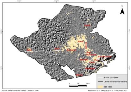 En 1998, la surface bâtie a atteint environ 1 214 ha (carte 3). En un peu moins de 25 années, le bâti a augmenté de 216,16% pour un taux d’accroissement moyen annuel de 4,9%. La ville de San- Pedro comptait 140 mille habitants soit une densité de 116 hbt/ha.