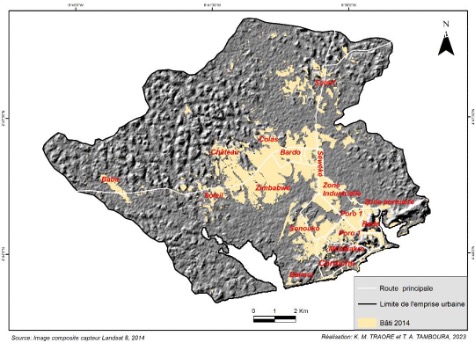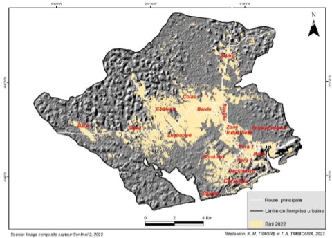 L’étude s’est effectuée sur la base du croisement de la couche des pentes et celles du bâti obtenu par application de l’algorithme Random Forest aux rasters de la couverture aérienne de 1974 et des images satellitaires Landsat de 1998 et 2014 puis Sentinel 2 de 2022, dans la plateforme Google Earth Engine. Les documents démographiques et les enquêtes de terrain ont été des sources complémentaires d’informations.