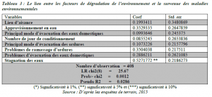 des paramètres n’apporte pas d’informations qualitatives suffisantes pour l’interprétation. Les variables retenues pour montrer le seuil de significativité de chaque variable ont permis d’obtenir les résultats consignés dans le tableau 3.