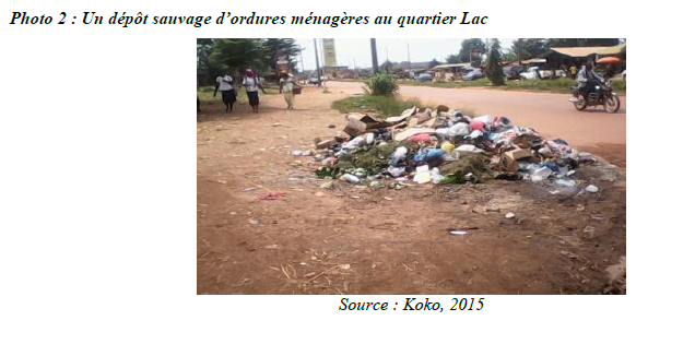 économiques respectivement 55,4% et 35,2% à San Pédro. Les rues, les terrains vagues, les bas-fonds sont les modes d’élimination des ordures ménagères les plus répandus dans les quartiers à habitats précaires et évolutifs à 58,6%. Pour M. Barry et al.(2009, p. 52), le taux d’enlèvement des déchets consécutif à des dysfonctionnements au niveau de la filière de gestion des déchets solides conjugué avec l’incivisme des citoyens, contribue à donner aux villes une véritable image de «villes-poubelles». L’omniprésence des tas d’immondices dans la ville de San Pédro montre que la gestion des ordures ménagères demeure problématique malgré la présence de collecteurs. Les dégradations les plus particulièrement visibles sont les déchets non collectés qui pullulent aux abords des rues et restent stockés sur les lieux de déversement (photo 2). Or, G. M. Niamké(2016, p. 81) a montré que la production des déchets devrait s’accompagner d’une collecte efficace, afin d’éviter les amoncellements des détritus qui visiblement créent des dommages environnementaux sur l’espace et la conséquence de cette situation est traduite par la dégradation du cadre de vie. Ces édifices, zones de prédilections des insectes et autres vecteurs nuisibles, rendent vulnérables au plan sanitaire les populations vivant à proximité. La prolifération des décharges dans les rues et places publiques favorise la multiplication des rongeurs, des mouches, des moustiques, des cafards, etc. Ces insectes nuisibles sont des vecteurs de maladies liées à l’environnement comme P. Tuo et al. (2016, p. 207) et G.M. Niamké (2016, p. 96) l’ont aussi relevé.