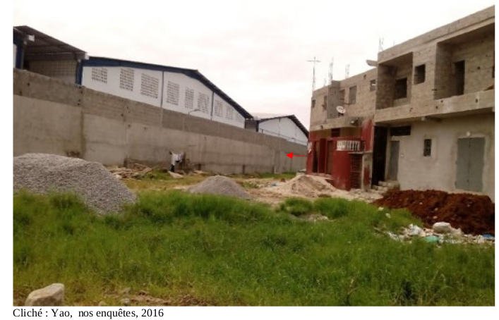 Par exemple, dans la zone industrielle de Koumassi, dans le quartier Soweto et à Vridi aux environs de la SIR, plusieurs bâtiments sont sortis de terre au point où il n’y a plus de zone de servitude d’utilité publique (SUP). En fait, il s’agit de limitations administratives au droit de propriété, instituées par l’autorité publique dans un but d’utilité publique. Les SUP s’imposent aux documents d’urbanisme. La servitude ne peut affecter que le voisinage des installations classées pour la protection de l’environnement (ICPE) susceptibles de créer des risques importants pour les populations du fait des risques d’explosion ou d’émanation de produits nocifs (directive SEVESO 3). Les servitudes d’utilité publique sont également applicables pour les risques supplémentaires créés par une installation nouvelle sur un site existant ou par la modification d’une installation existante nécessitant la délivrance d’une nouvelle autorisation. Cette absence de servitude favorise le maillage entre habitats et industries (photo 1).