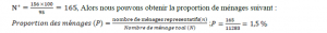 D. Giezendanner (2012) a permis de calculer la taille de l’échantillon représentatif :