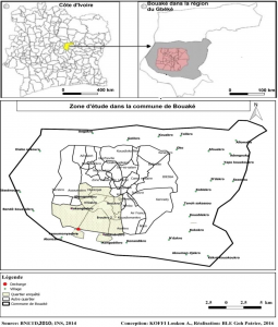 Figure 1 : Localisation et Présentation de la zone d’étude dans la commune de Bouaké