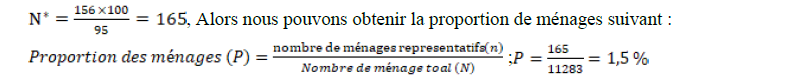 Le nombre de ménage le plus représentatif obtenu est de 156. Afin de pallier les pertes dues aux refus ou aux réactions des personnes enquêtées, nous avons procédé à une reconstruction de la taille de cet échantillon. À cet effet nous avons choisi la méthode de compensations de H. Gumachan et al. (2000).