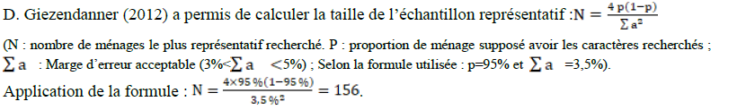 D. Giezendanner (2012) a permis de calculer la taille de l’échantillon représentatif :