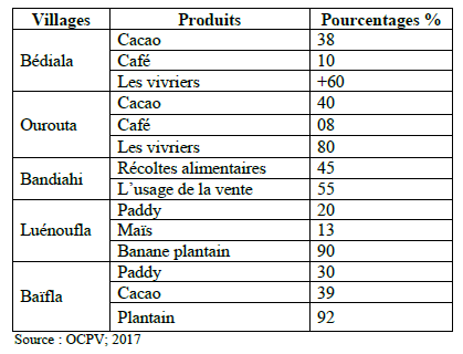 Tableau 2 : Répartition des productions perdues en 2017 dans la sous-préfecture de Bédiala.
