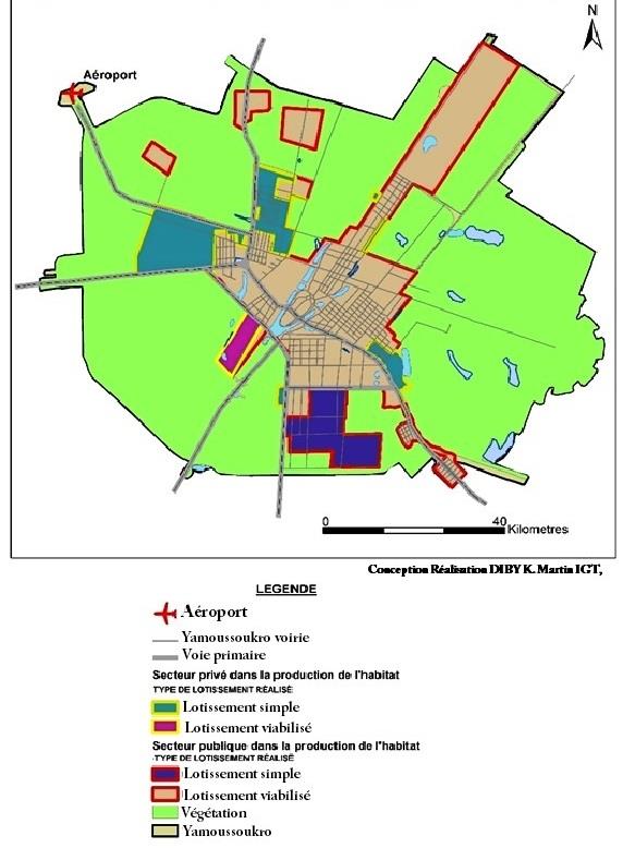 Les investigations ont permis d’identifier plusieurs types de lotissements réalisés à Yamoussoukro sous les aspects suivants : lotissements administratifs, lotissements villageois; lotissements privés (Figure 2).