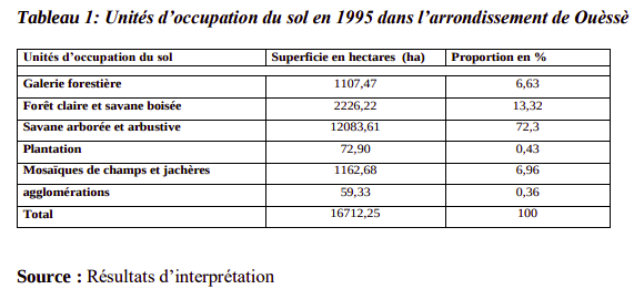 Le tableau 1 présente les résultats de l’interprétation de l’occupation du sol en 1995.