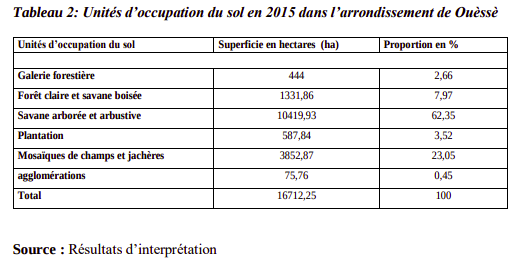 2-2-Dynamique de l’occupation du sol dans l’arrondissement de Ouèssè