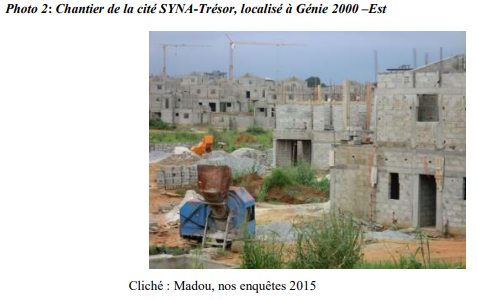 La cité SYNA-Trésor est un ensemble de 825 logements bâtis sur une superficie de 198,33 hectares. Elle comportera à terme, des duplex de 4 pièces et des immeubles de R+3 avec des appartements de 4 pièces. Ce sont des logements de moyen standing. A ces acteurs, s’ajoutent les SCI publiques qui ont produit des logements à Cocody-Est entre 1970 et 1980 et des particuliers qui réalisent des logements individuels de moyen et haut standing.
